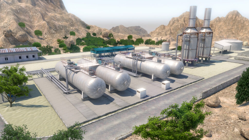 This is an industrial animation that shows salt refining of oil in the oil refinery plant.